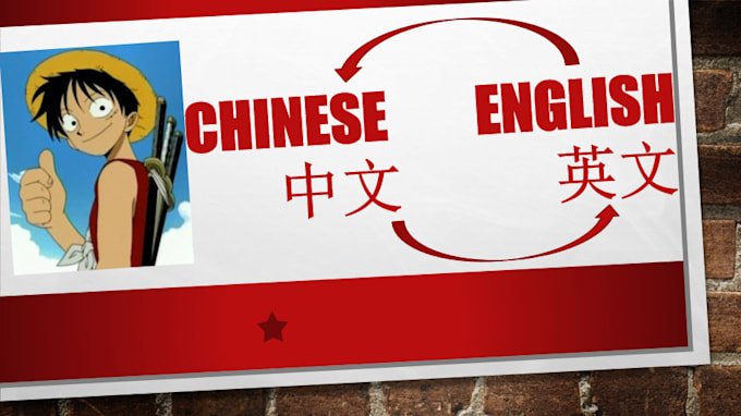 - Translation English from/to Chinese (Simplified or traditional)